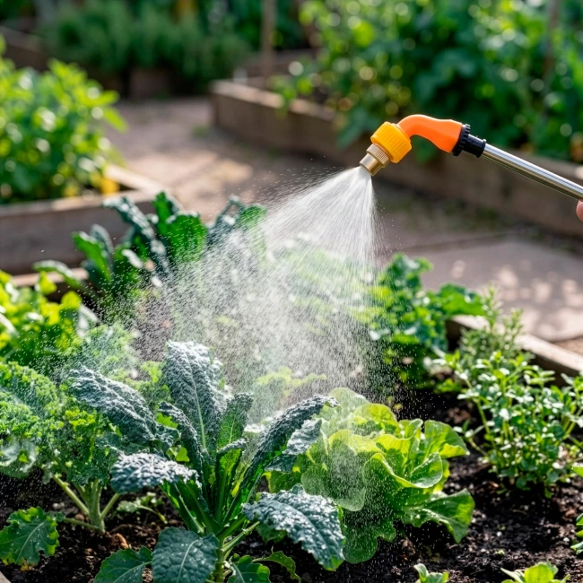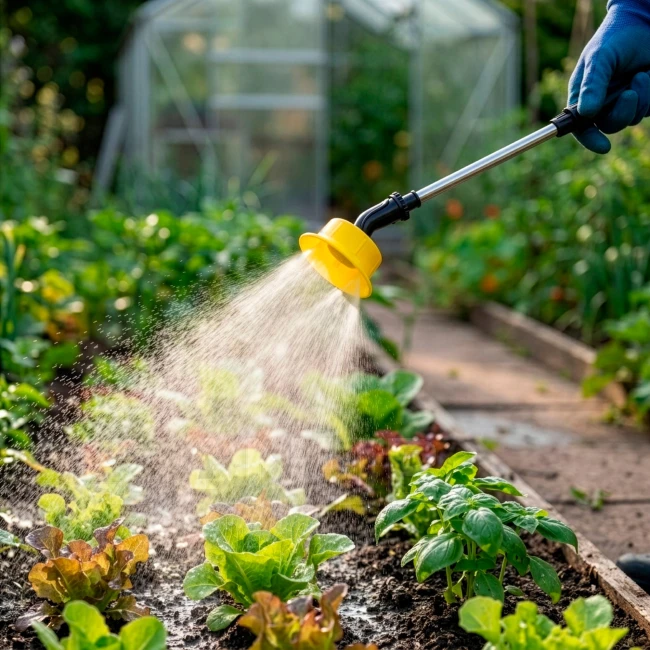 - A fogantyún található egy piros gomb a permetező zárásához és kinyitásához.
