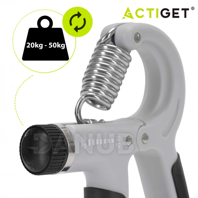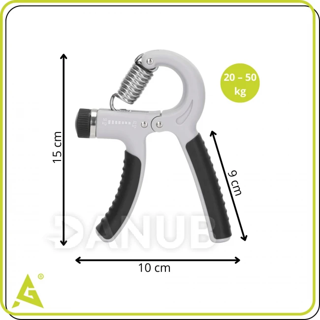 Állítható ellenállású (20–50 kg) kézerősítő a karok edzéséhez – szürke és fekete