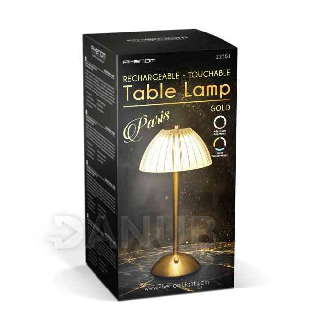 Asztali lámpa - arany színű - állítható színhőm, fényerő - akkumulátoros - USB