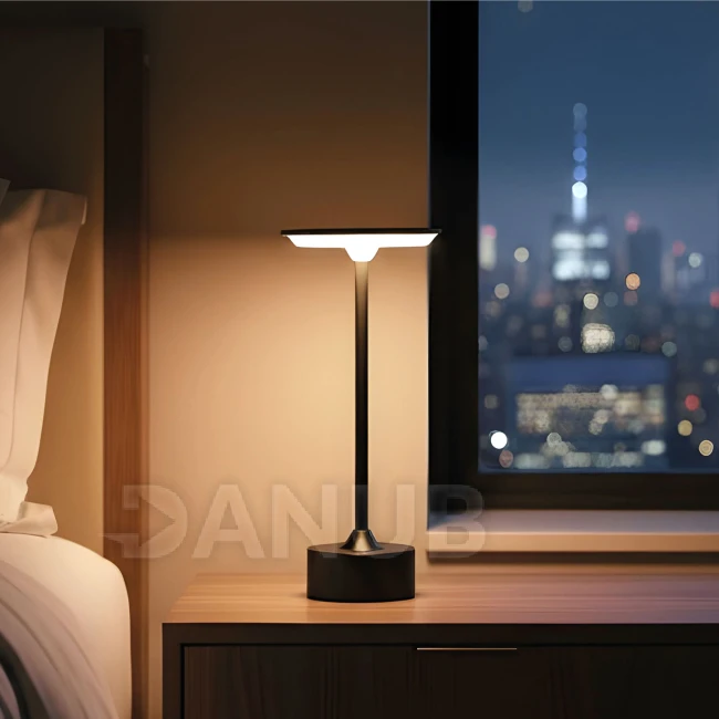 Asztali lámpa - fekete színű fém - állítható színhőm, fényerő - akkumulátoros - USB
