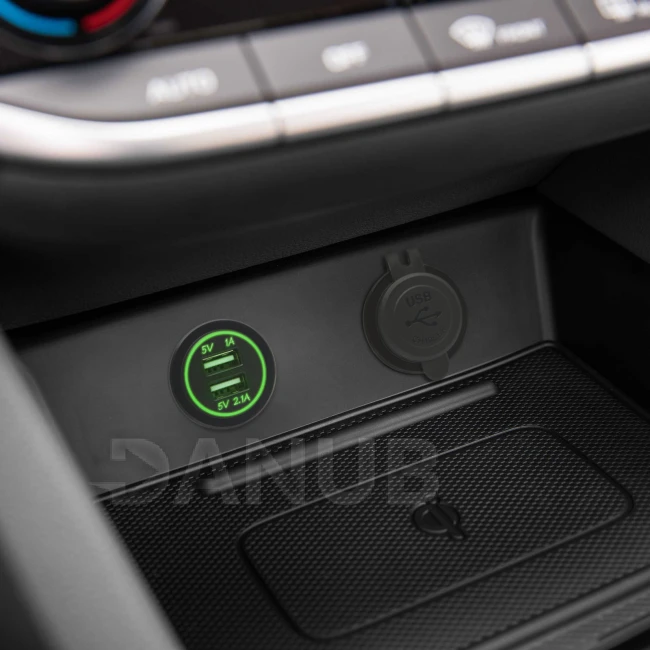 Beépített USB-csatlakozó az autós öngyújtó helyett. Használatával helyettesíti az USB-adaptert. A teljes autós öngyújtót kicserélheti, így elkerülheti az esetleges érintkezési hibákat. A kék fény jelzi, hogy az aljzat áram alatt van, és segít az USB-kábel csatlakoztatásában a sötétben. A gumisapka megakadályozza, hogy por vagy szennyeződés kerüljön az USB-portokba. Ha nem használja az aljzatot, akkor a kék fényt a kupakkal takarhatja le. Ha nem szeretné használni, egyszerűen eltávolíthatja.