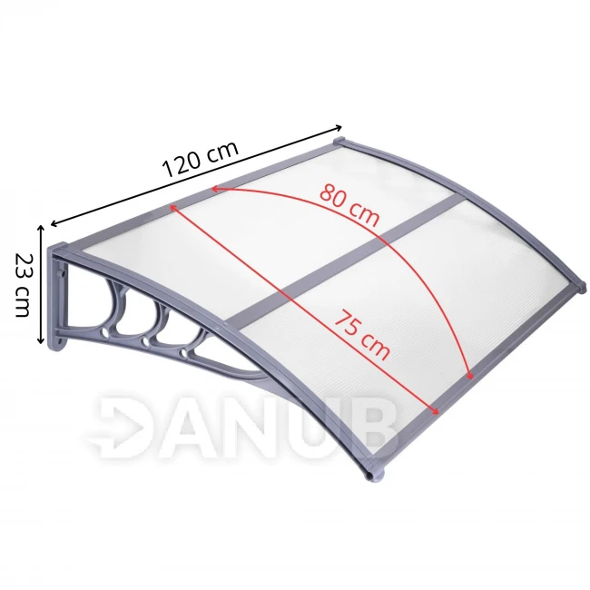 Bejárati ajtó előtető - 120x80 barna - szürke/átlátszó