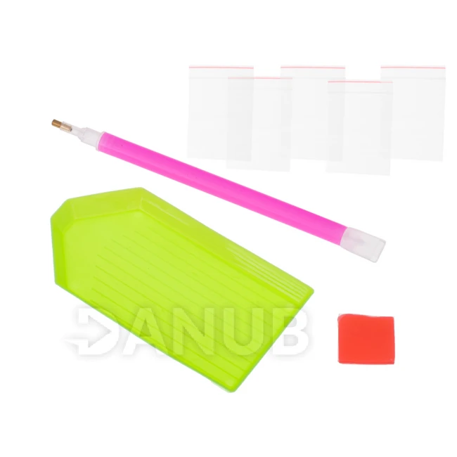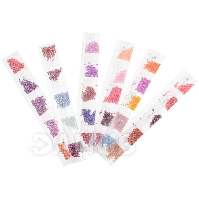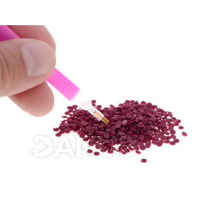 Öntse a kiválasztott színű gyöngyöket egy kis edénybe, és ellenőrizze a zacskó címkéjét. Fogja meg az applikátort, és mártsa a hegyét száraz ragasztóba.