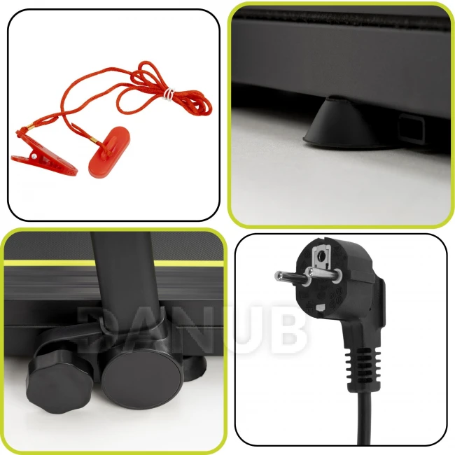 - A futópad mágneses biztonsági kulccsal van felszerelve: a klip a felhasználó ruhájára rögzíthető, a mágnes az irányítópulton található. Elesés vagy megcsúszás esetén a mágnes kiold, leállítva a futópadot a biztonság érdekében