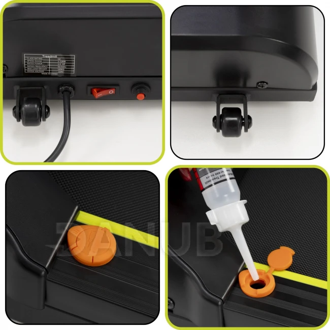 - Rendszeres karbantartás kenéssel biztosítja a megfelelő működést, csökkenti a súrlódást és meghosszabbítja a futópad élettartamát