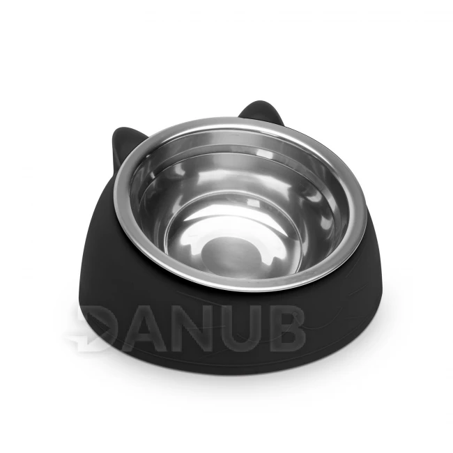 Klasszikus etetőtál, amely kivehető rozsdamentes acélból készült. A tál külső része színes műanyag, cica fülekkel díszítve. Az enyhén döntött kivitelezés felelős azért, hogy cicája még kényelmesebben fogyaszthassa el az ételt. Anyaga miatt alkalmas etetőtálnak és itatónak is.