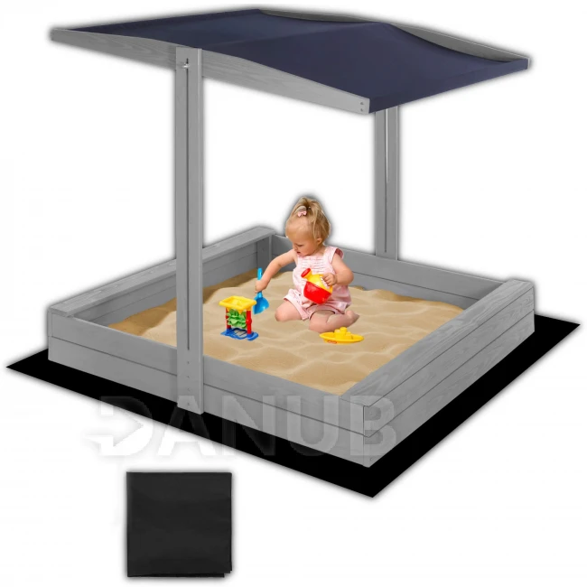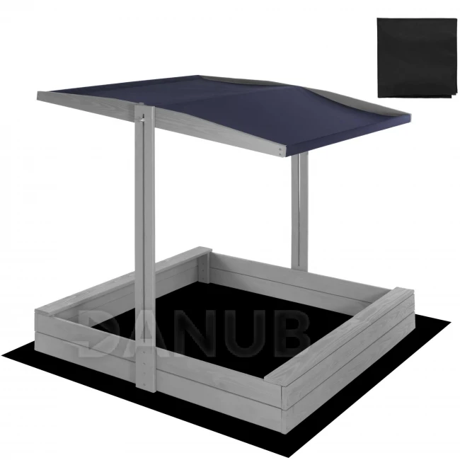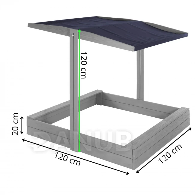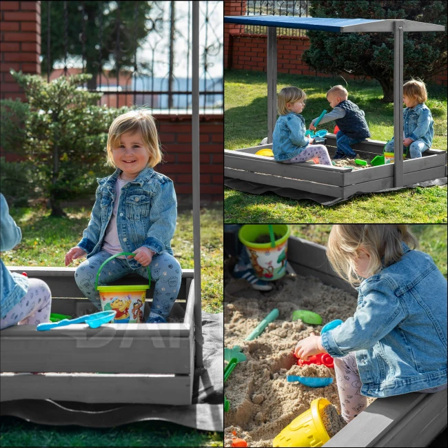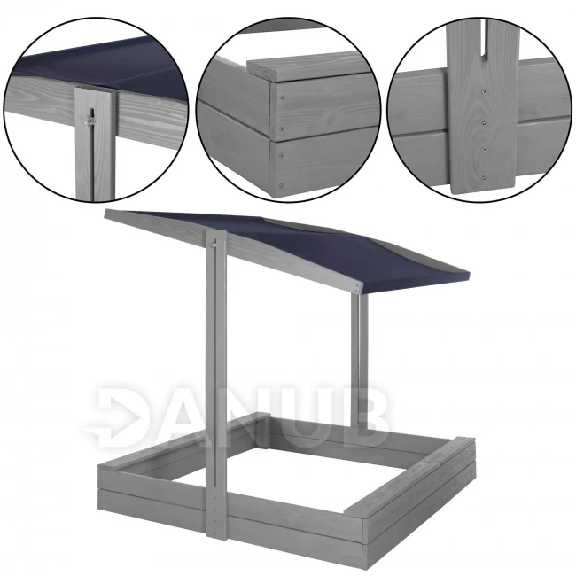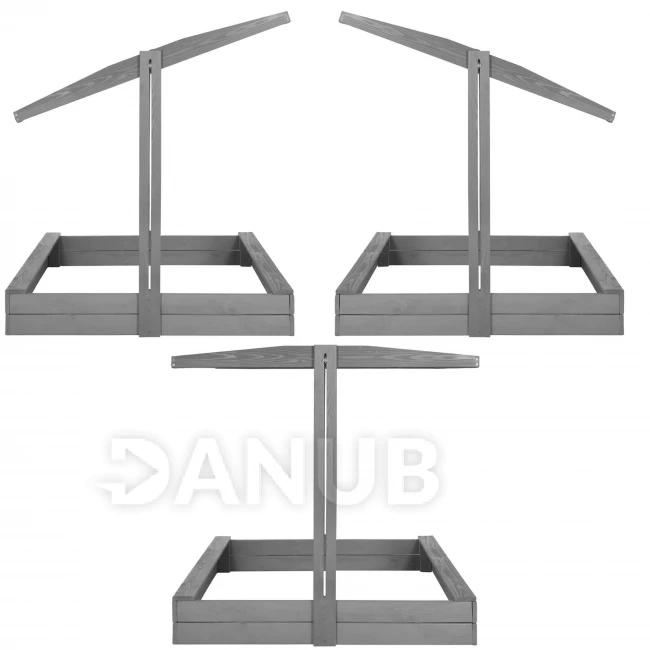 Fa homokozó tetővel és padokkal - 120x120 cm - zárható - szürke