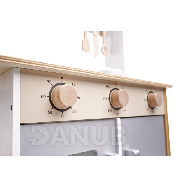 A tűzhely vezérlésére szolgáló gombok nagyon valósághűek, emlékeztetnek a valódi készülékek gombjaira. Elfordításuk nem igényel nagy erőt, egy kisgyermek is gond nélkül meg tudja csinálni!