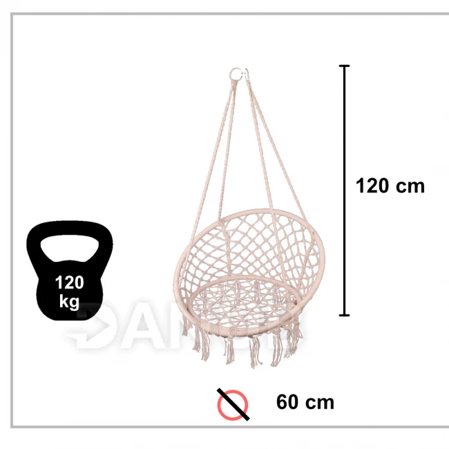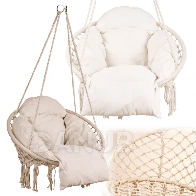 Felakasztható karosszék párnával 60x80x120 cm - ekrü