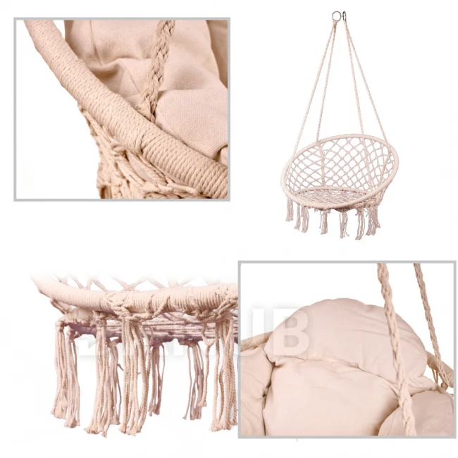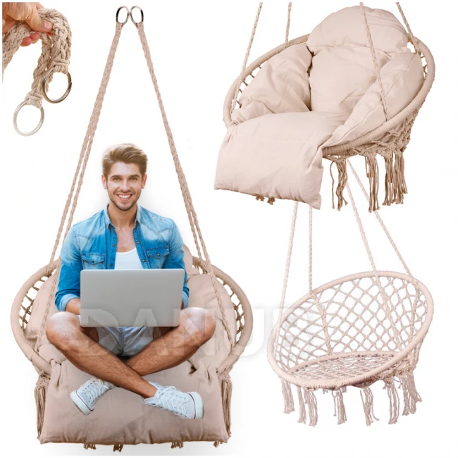 Az Ön kényelmét szem előtt tartva készült, garantálja a tökéletes testhelyzetet, a puha párna pedig tovább fokozza a hintázás élvezetét. Élénk színű kialakítása nem csak kertje varázsát fokozza, de otthonának dekorációjának is feltűnő kiegészítője lesz. A hinta robusztus anyagokból készült, és erős kötelekkel van ellátva, így akár 120 kilogrammos súlyt is könnyedén elbír.