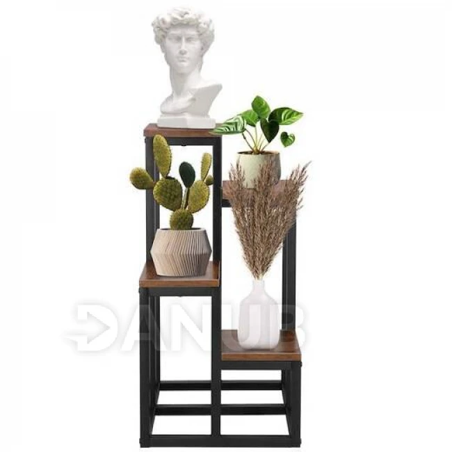 Fém virágállvány 4 polccal - 67,5 cm - fekete/barna