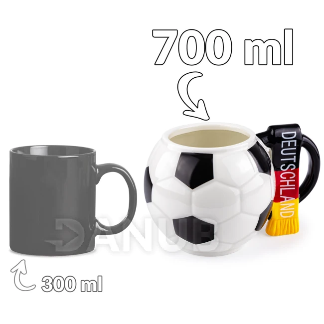 Nagy méretű, 700 ml-es XXL focis bögre szurkolóknak és labda alakú alátét.