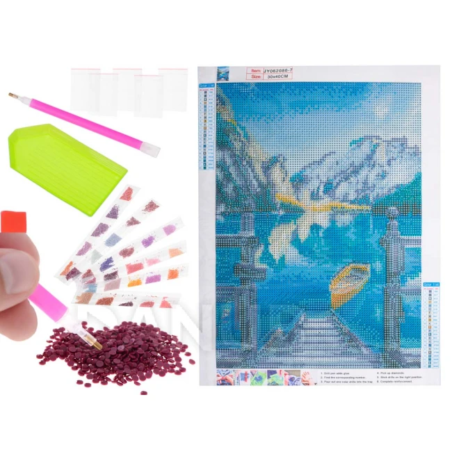 Az egész vászon öntapadó ragasztóréteggel van bevonva, ennek köszönhetően tapadnak a gyémántok a vászonhoz. Távolítsa el a fóliát a vászon azon részéről, ahol dolgozni fog.