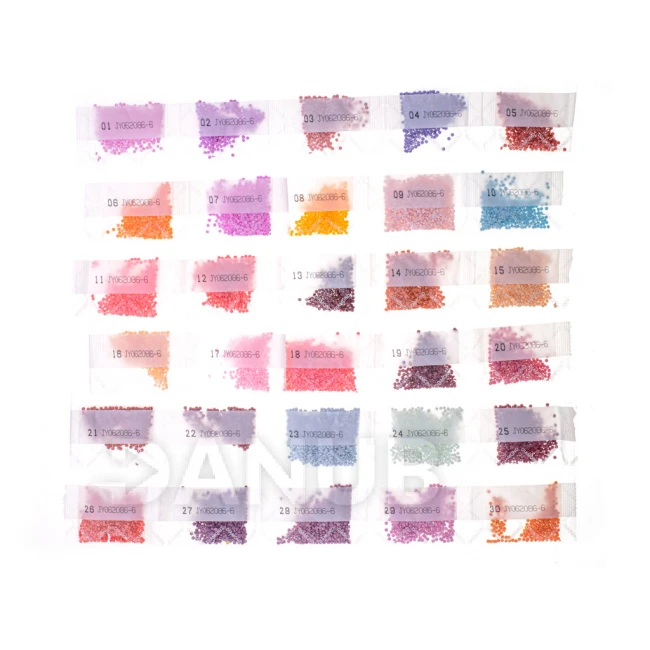 Öntse a kiválasztott színű gyöngyöket egy kis edénybe, és ellenőrizze a zacskó címkéjét. Fogja meg az applikátort, és mártsa a hegyét száraz ragasztóba.