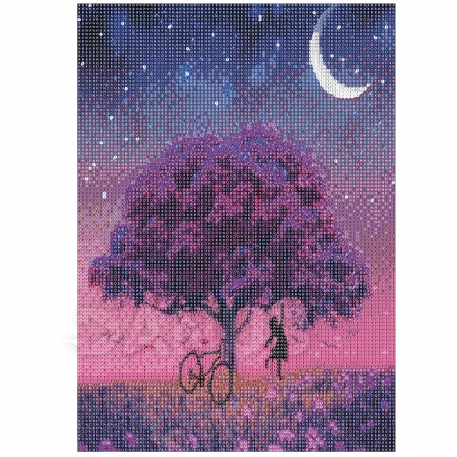 Gyémántfestés - hímzés - 30x40 cm - fa és éjszakai égbolt