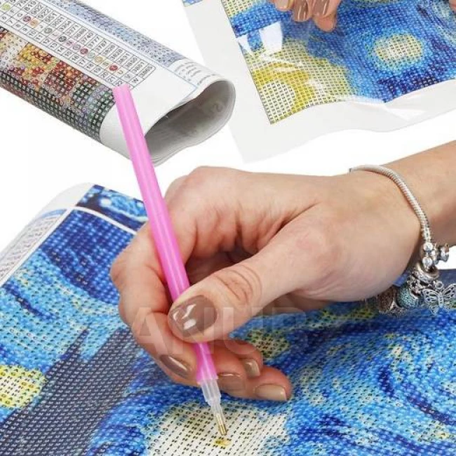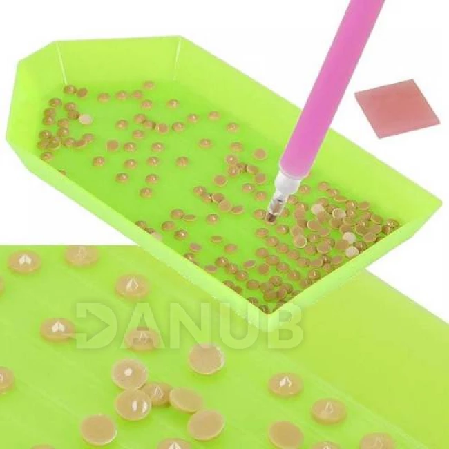- Rózsaszín applikátor a gyémántok megfogásához és felragasztásához