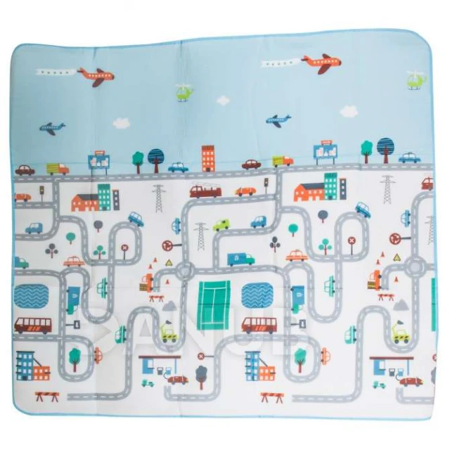 Nagy és egyoldalú habszivacs szőnyeg városi mintával, amely a gyermekek szórakozásához lett tervezve. Ideálisan megállja a helyét szőnyegként a gyerekszobában. A szőnyeg tökéletesen szigetel, és felszívja a vízcseppeket, így gyermeke biztonságosan játszhat a padlón. Ideális azon gyermekek számára, akik még nem képesek az önálló járásra. A csúszásgátló konstrukciójának köszönhetően gyermeke biztonságosan teheti meg az első lépteit. A betét alatt van egy réteg hőszigetelő fólia, így nyugodtan magával viheti a kertbe vagy akár a strandra. Remek kiegészítő a gyerekszobába, szórakozás minden totyogó kisgyermek számára. Ellenáll minden szennyeződésnek. Könnyen tisztítható, nedves ronggyal. Praktikus táskába csomagolt, cipzárral megfogatott, így könnyen magával viheti bárhová.