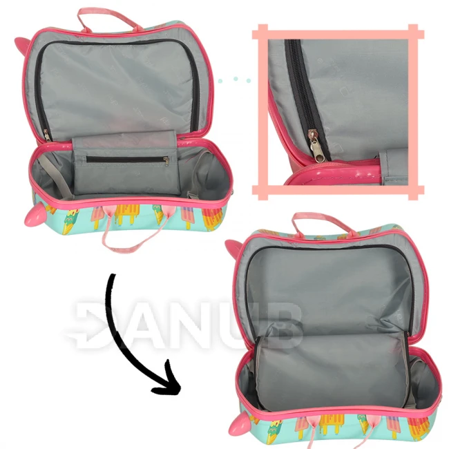 - A különleges kialakítás lehetővé teszi, hogy a kisgyermek ráüljön a bőröndre