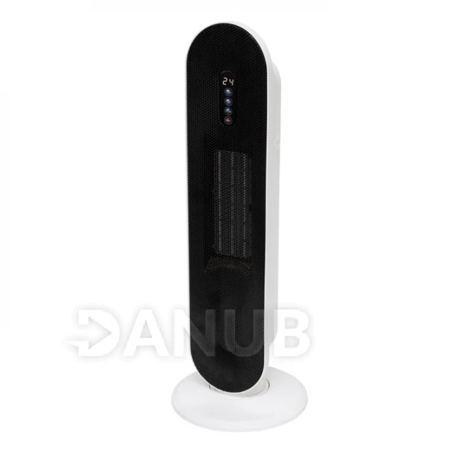 Az elegáns fehér színű készülék két fűtési fokozattal rendelkezik: 1400 W és 2000 W teljesítménnyel, így a hőmérsékletet igényei szerint állíthatja be. Az érintőgombok és a fehér LED-kijelző segítségével könnyedén szabályozhatja a készüléket, miközben a távirányítóval minden funkció kényelmesen vezérelhető. A PTC kerámia fűtőelem biztosítja a gyors és egyenletes hőeloszlást, míg az automatikus kikapcsolás túlmelegedés vagy felbillenés esetén garantálja a biztonságos használatot. Az elektronikus termosztát lehetővé teszi a hőmérséklet pontos beállítását 15°C és 40°C között, így mindig az Ön igényeinek megfelelő meleget biztosít.