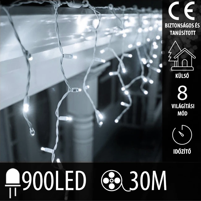 Karácsonyi kültéri LED fényfüggöny - programok - időzítő – 900 LED – 30 M hideg fehér