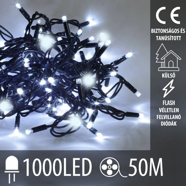 Karácsonyi kültéri led fényfüzér FLASH - 1000led – 50m - hideg fehér / hideg fehér