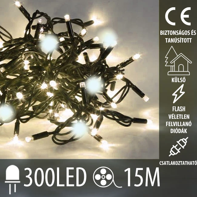 Karácsonyi kültéri led fényfüzér FLASH – csatlakoztatható - 300led – 15m – meleg fehér / hideg fehér