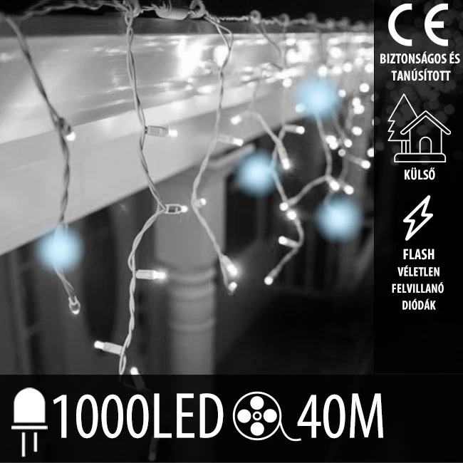 Karácsonyi led fényfüggöny kültéri flash - 1000led - 40m - hideg fehér / hideg fehér