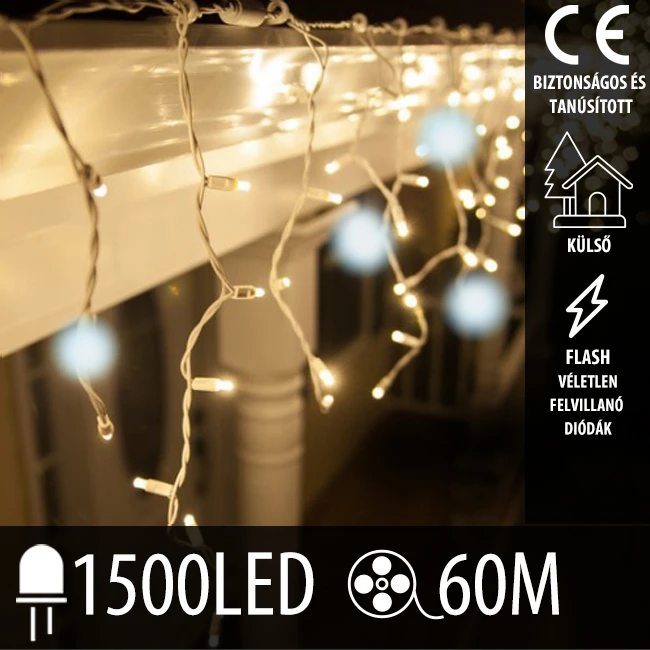 Karácsonyi led fényfüggöny kültéri flash - 1500led - 60m meleg fehér / hideg fehér