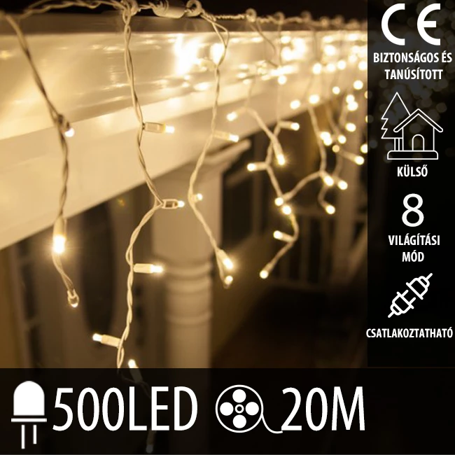 Karácsonyi LED fényfüggöny kültéri - programok + távirányító - 500LED - 20M Meleg fehér