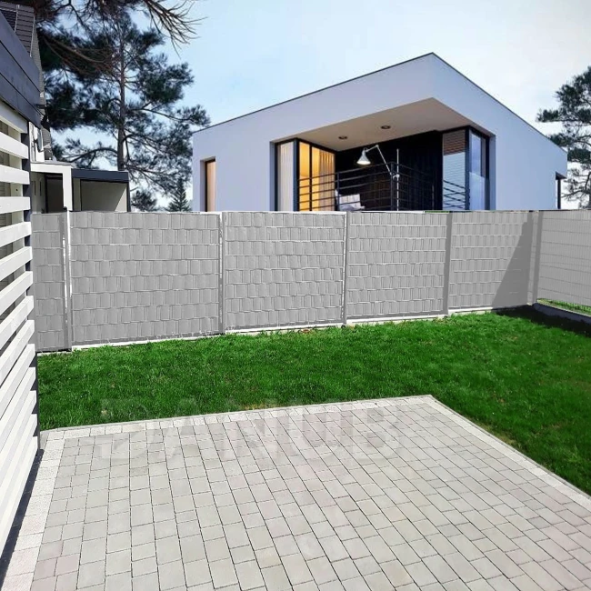 Kerítésárnyékoló szalag – 450 g/m² – 50 m x 19 cm – világosszürke + 20 db rögzítőkapocs