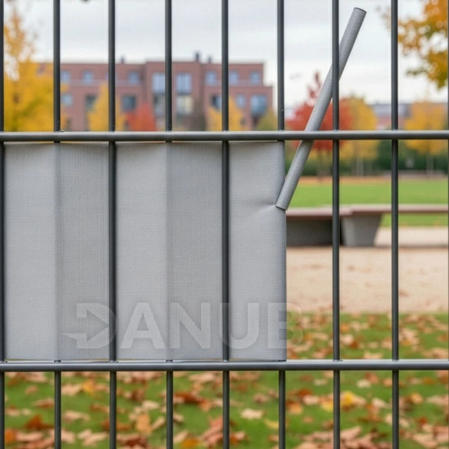 Kerítésárnyékoló szalag – 450 g/m² – 50 m x 4,75 cm – világosszürke + 20 db rögzítőkapocs