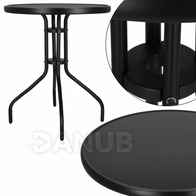 Kerti asztal kerek - 60 cm - edzett üveg - fekete
