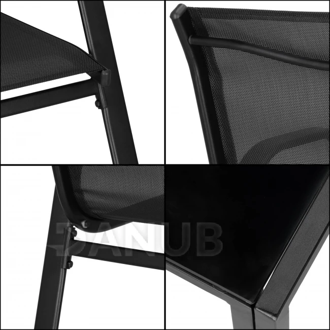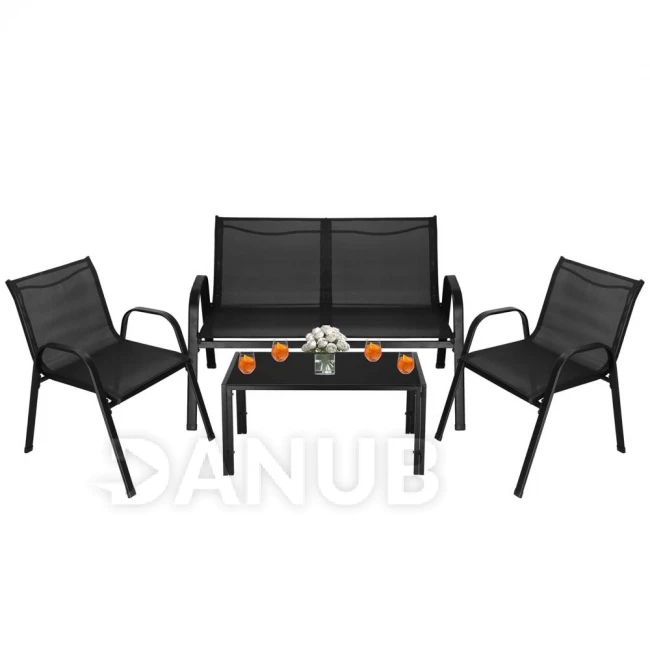 Kerti bútor szett: kanapé, 2 szék és asztal üveglappal - fekete