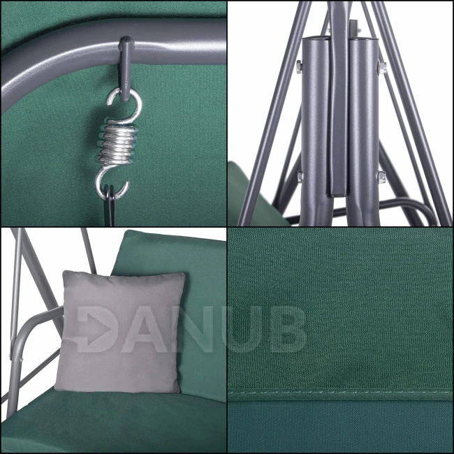- Szín: zöld, szürke (párnák), grafit (váz)