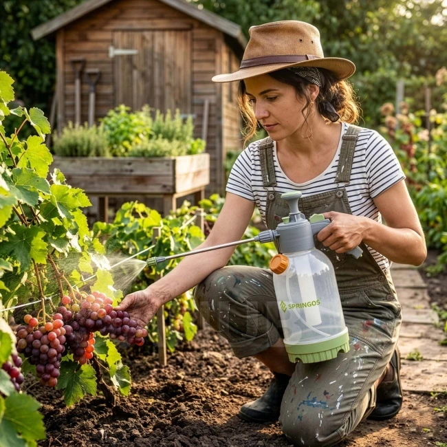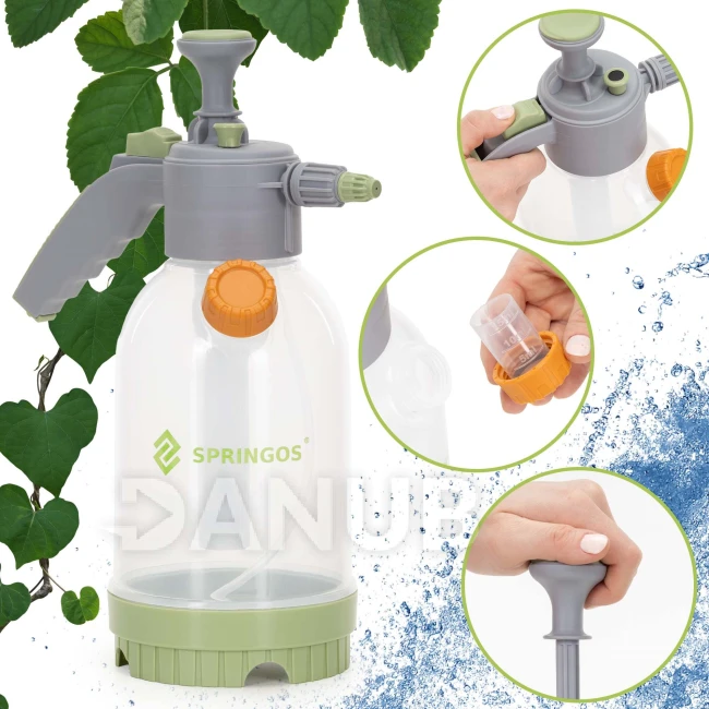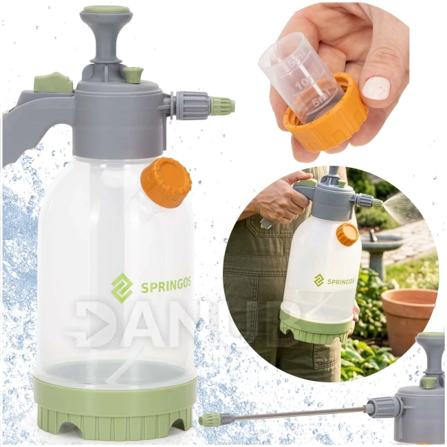 - A fogantyún található egy zöld gomb a permetezés ki- és bekapcsolásához.