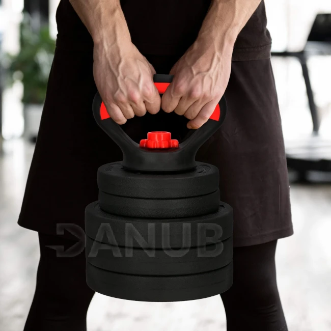 Kettlebell 10 kg-os, állítható súlykapacitással, 5 korongból álló készlet