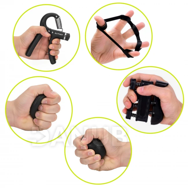 - A készlet 5 kiegészítőt tartalmaz az ujjak és a fogás gyakorlásához.