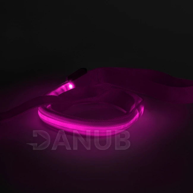 LED-es póráz - akkumulátoros - 120 x 2,5 cm - rózsaszín