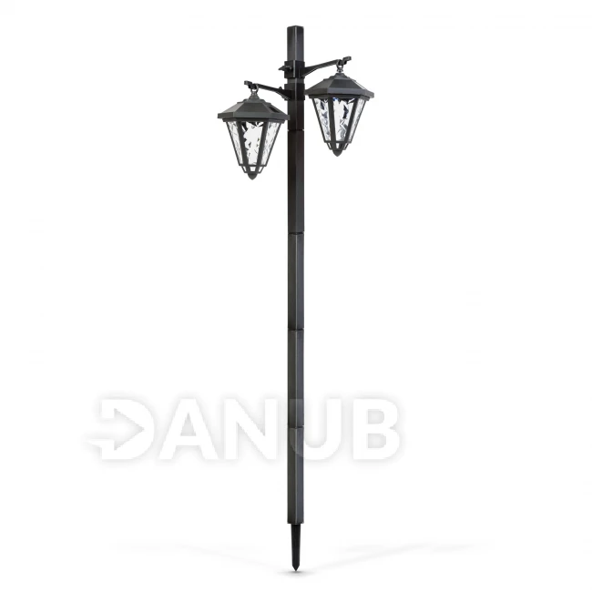 LED-es szolár lámpa - kandeláber - 137 cm - fekete - hidegfehér