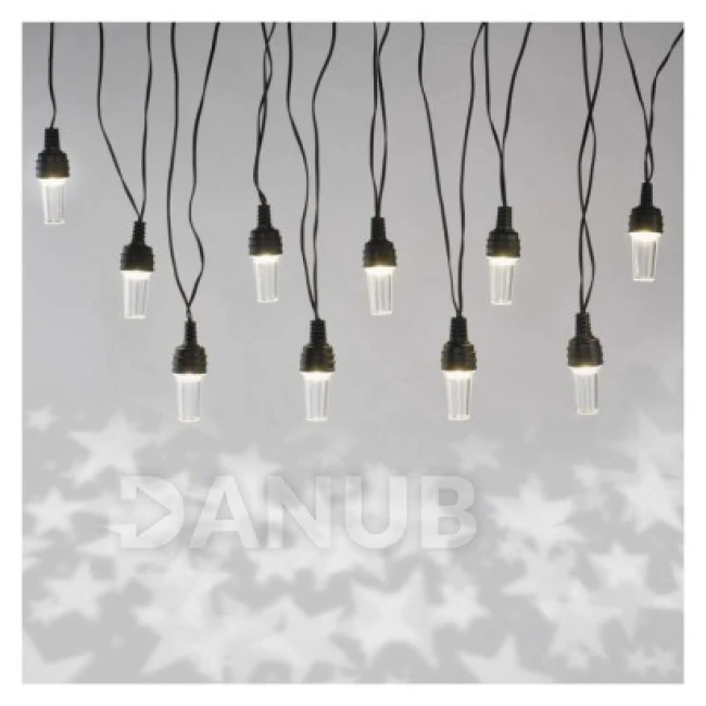 LED fénylánc - 10x party izzó, átlátszó, 4,5 m, kül- és beltéri, hidegfehér színű