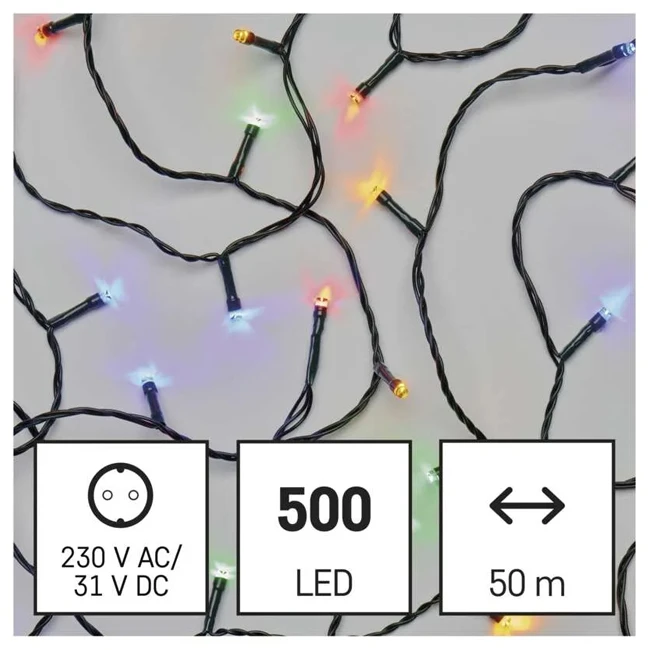 LED karácsonyi fényfüzér, 50 m, kültéri és beltéri, többszínű, programok, időzítő