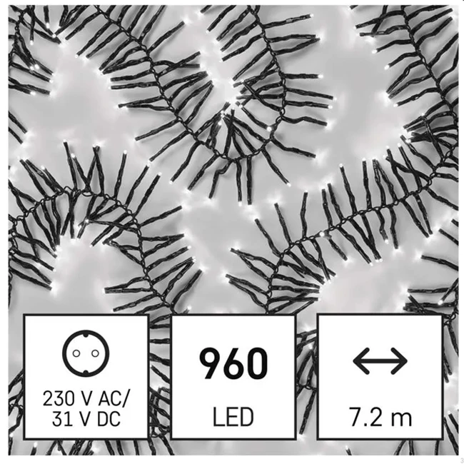 LED karácsonyi fényfüzér – sündisznó, 7,2 m, kültéri és beltéri használatra, hideg fehér, programok