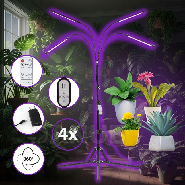 LED lámpa növények növekedéséhez, 4 panel - időzítő és távirányító - USB