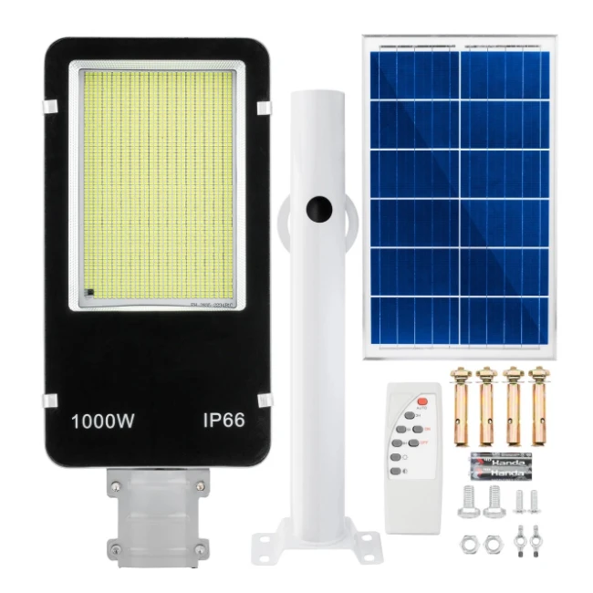 LED napelemes utcai lámpa - 1000W - 6500K - tartóval és távirányítóval - fehér