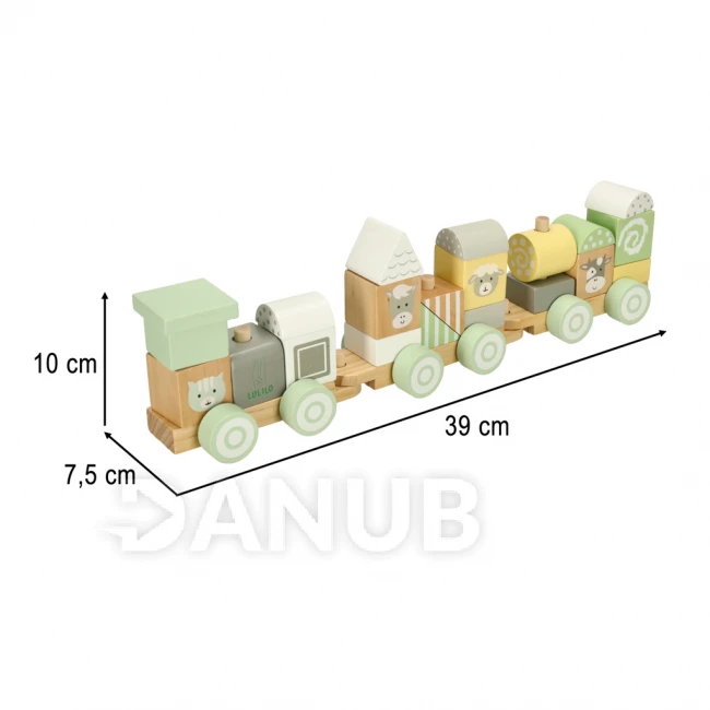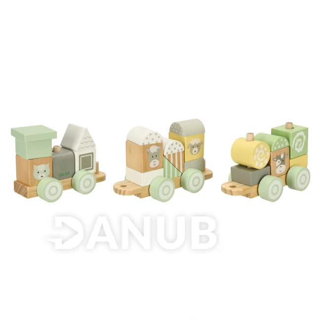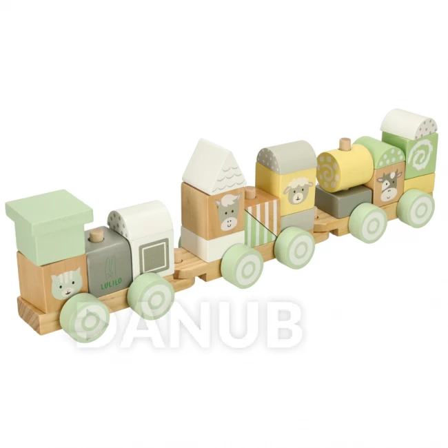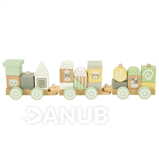 A LULILO fából készült kisvonat tökéletes választás a kicsik számára. A három különböző blokkból álló kocsi sokféle játékváltozatot tesz lehetővé - a kocsik minden alkalommal másképp nézhetnek ki. A gyermek a blokkokat tetszőleges formában és kombinációban elrendezheti, szabad utat engedve a fantáziájának. Az egész készlet fából készült, amelyet simára csiszoltak és a biztonság érdekében nem mérgező festékkel festettek.