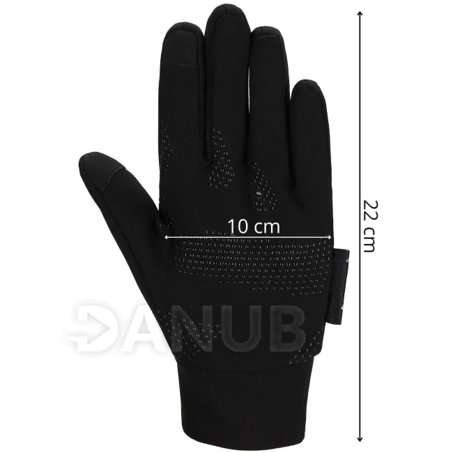 - Előnyök: csúszásgátló réteg a kéz belső oldalán, érintőréteg két ujjon, cipzár a kéz nyílásának beállításához