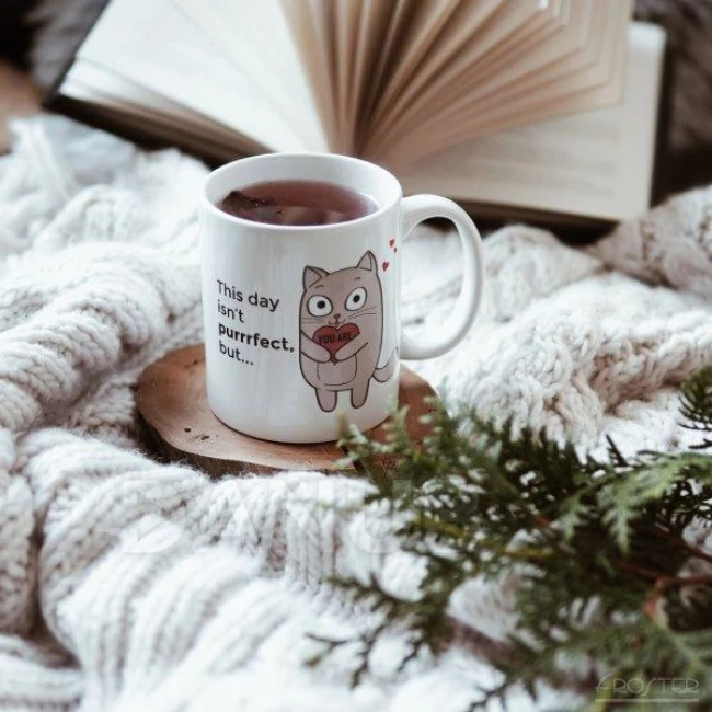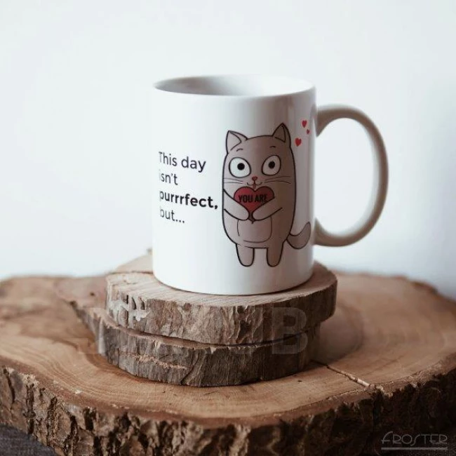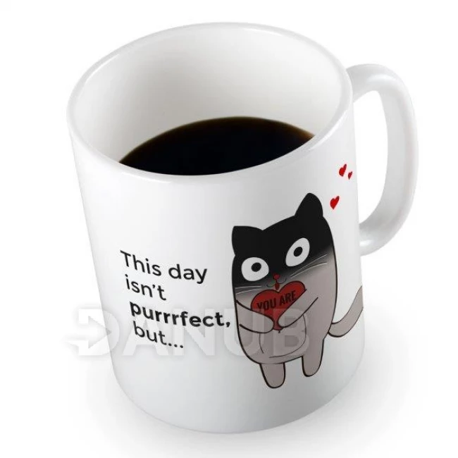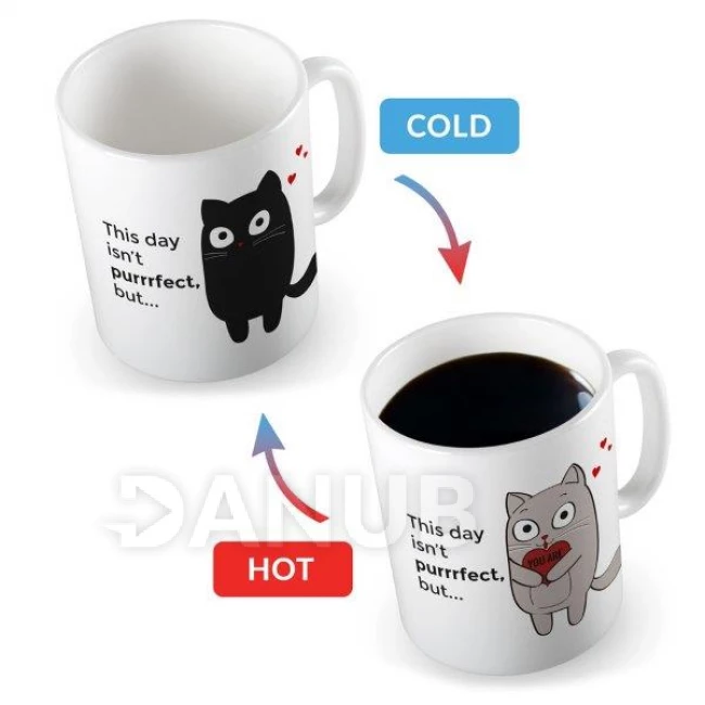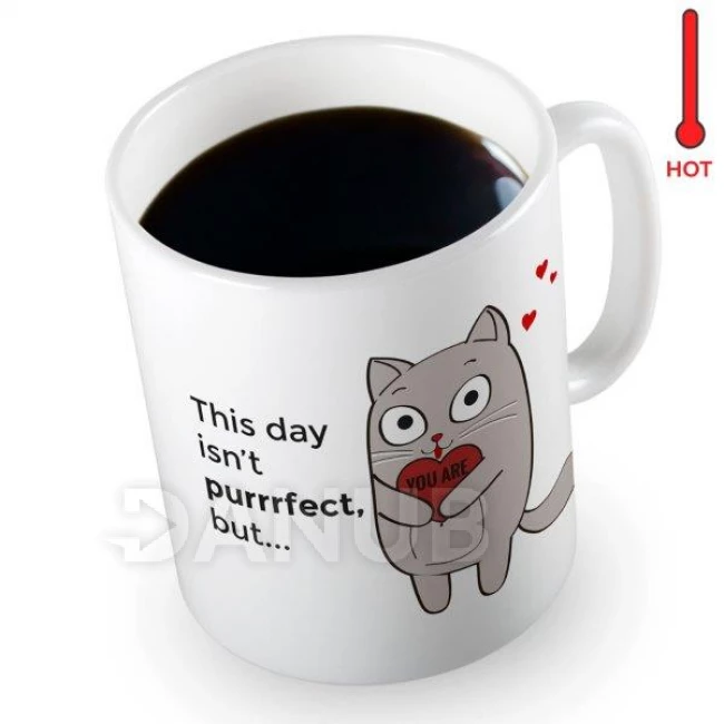 Egy bögre változó macskával és rejtett üzenettel: This day isn’t purrfect, but...YOU ARE