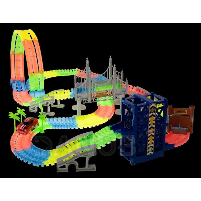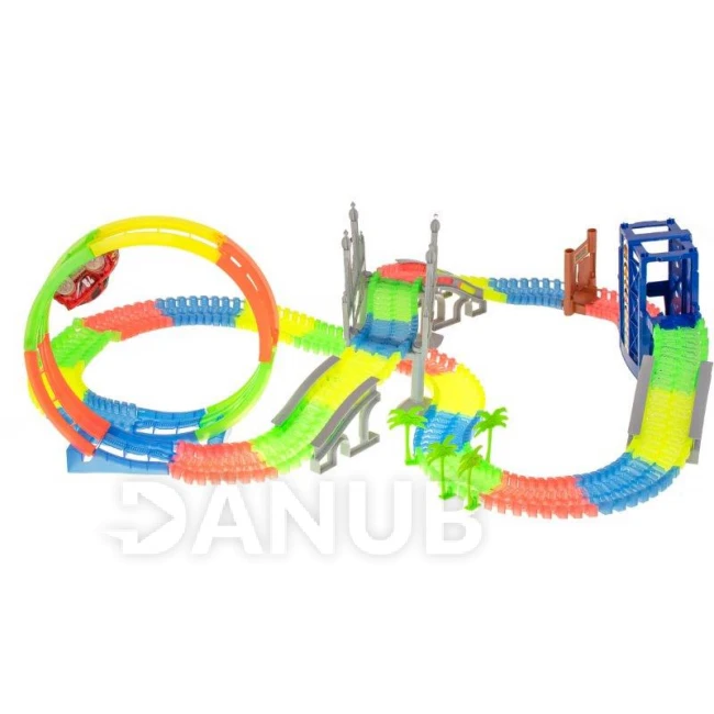 Szenzációs autópálya elemre működő autóval. Az autónak jó a tapadása, így a nagy sebesség ellenére nem esik le a pályáról. A pálya egyes elemei rugalmasak, szabadon elrendezhetők és különböző módon kombinálhatók.