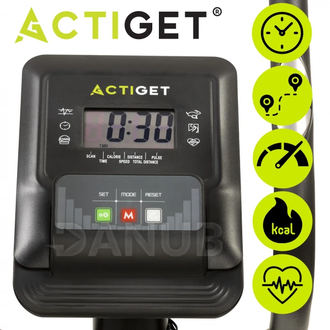 - Az edzéskomputer megjeleníti az időt, a sebességet, a távolságot, az elégetett kalóriákat, az ODO-t és a pulzusszámot