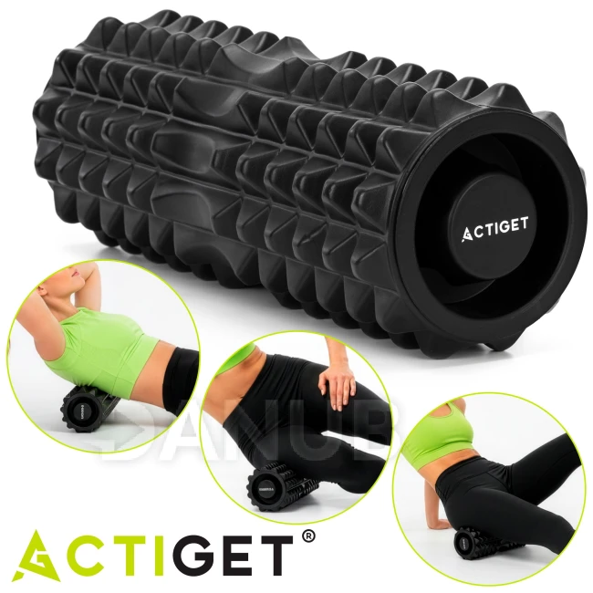 Masszázs habhenger/roller dudorokkal - közepesen kemény - fekete
